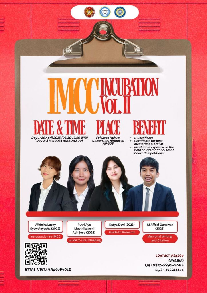 IMCC Incubation is an event organized by IMCA aimed at providing a deeper understanding of IMCC to members interested in competing, through workshops with IMCCs alumni and real memorial writing and pleading simulation. This event is designed to enhance interests and prepare members for IMCC, whether they’re already familiar with moot court or are just beginning to develop an interest.